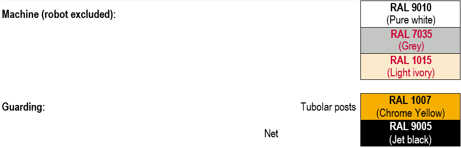 We would like to advise this quotation based on a standard plant that has NOT been conceived to operate in a potentially explosive environment/atmosphere both internal (i.e. relative to the working process of the equipment) and external. The machines which this quotation refers to are to be placed in non-classified areas (internal or external).