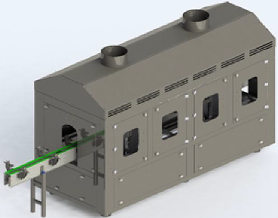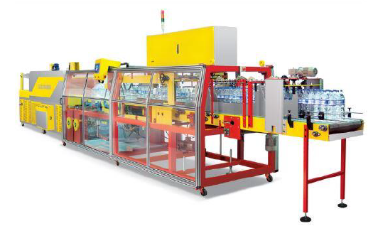 Products wrapped in polyethylene foils are fed into the Shrink tunnel with a speed-controlled conveyor and shrinked.