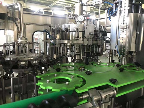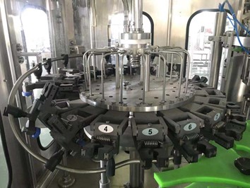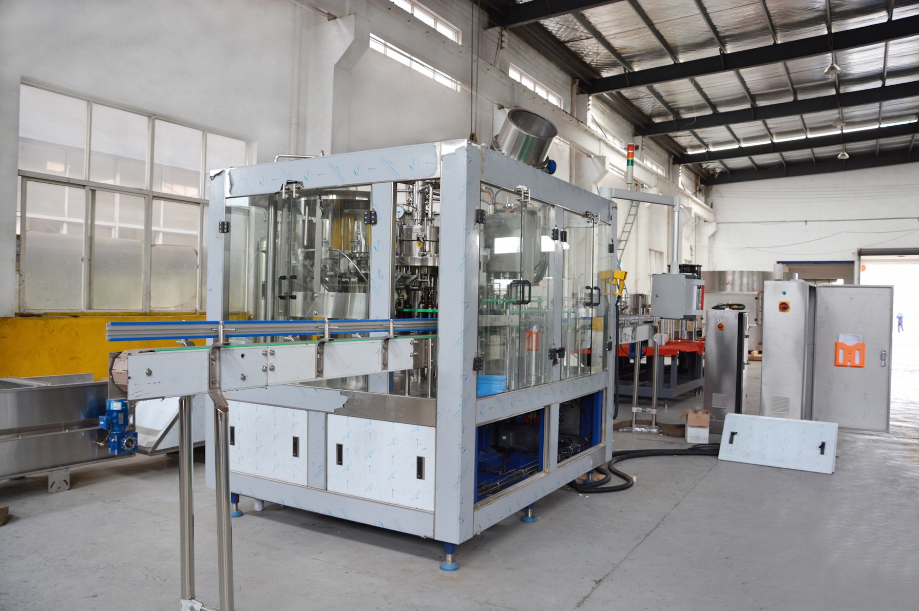 This machine works with chain plate conveyor belt This machine is used to fill carbonated drinks into glass bottle and with aluminium caps capping function. This machine integrated three functions: