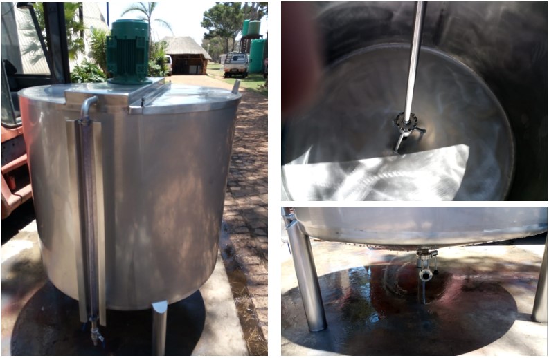 | Mixer Details: | Top mounted geared high shear mixer unit, 2.2KW, 380 Volt, complete with Solid Stainless-Steel Shaft and Mixing Impellor Set with bottom support spider |