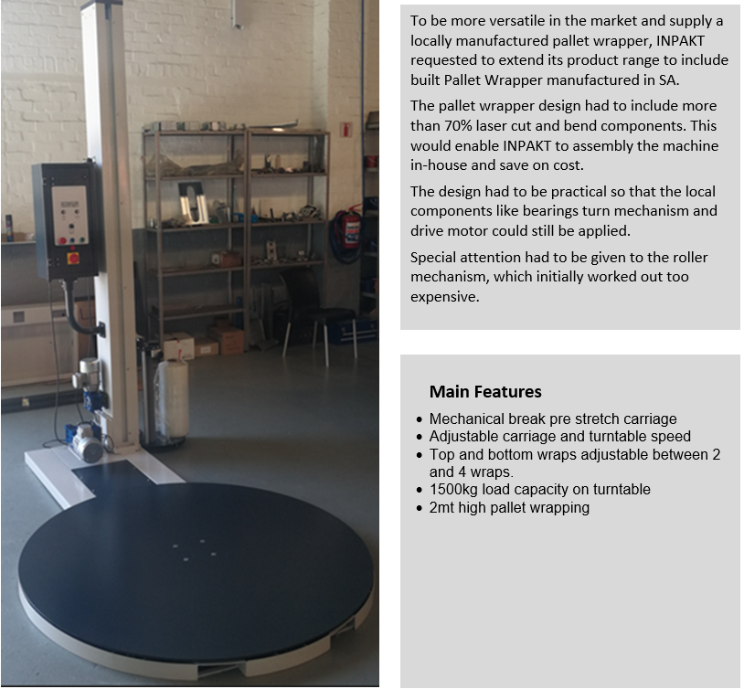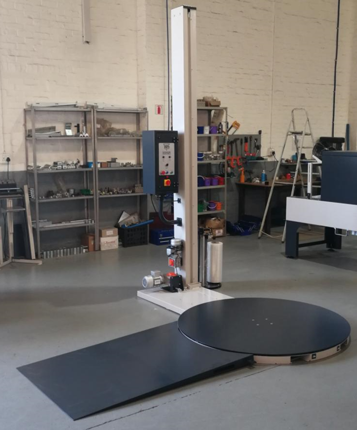 Mechanical break stretch pallet wrapping system with 1500mm turntable and with wrapping height of 2mt