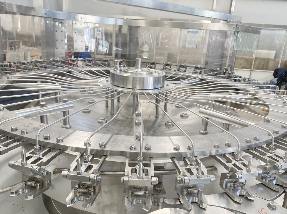 The operational efficiency of a production line is significantly influenced by the configuration of the conveyor line. This configuration must consider the occasional short-term shutdown of rear-end equipment, such as for label replacement, ensuring that the shutdown does not impact the operation of the front-end equipment. It should also facilitate seamless connection between the front and rear equipment to achieve high overall production line efficiency. Our production line layout is meticulously designed, taking into account the balance between customer investment and production line efficiency. Leveraging advanced global technology, we achieve the specified requirements. The mechanical structure boasts a new design, with components primarily formed through stamping or bending, offering advantages such as excellent rigidity, light weight, and interchangeability. The transmission method ensures reliable operation and convenient maintenance, suitable for conveying bottles with diameters ranging from Ø40 to Ø110mm. The electric control system, utilizing PLC on the rinsing-filling-capping tri-block, governs the operation of the entire container conveying buffer system. It automatically handles functions such as running speed acceleration, deceleration, and automatic buffering.