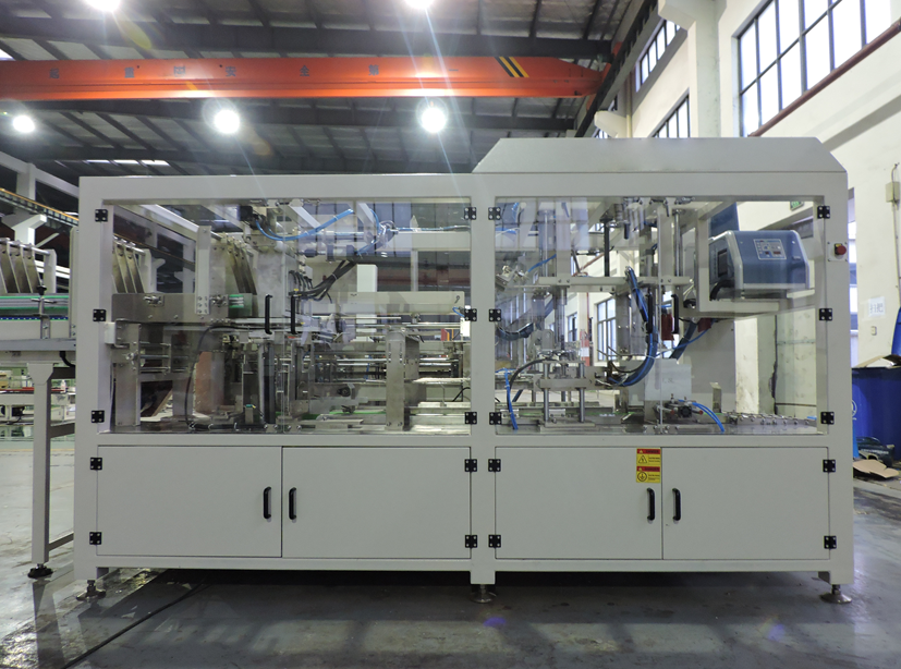 Bottles/Cans are separated to multi-channels at conveyor, and then grouped by bottle separating system evenly, then the bottles/cans drop onto the cardboard via bottle dropping system. Within the dropping process, card boards are folded to be cartons by the carton folding system. Through main drive, carton move forward, at the same time, The glue is being sprayed onto the carton, again the second stage carton forming system completes the processing of the carton forming with the help of the glue applying system. and through the side pressure and carton press system the carton is firmly conglutinated.