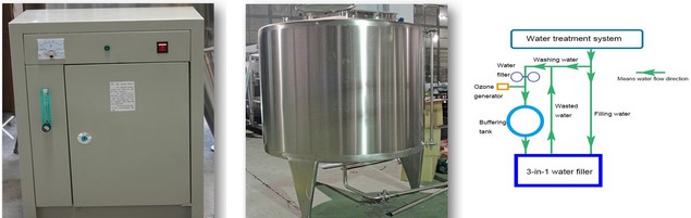 Bottle washing water recycling tank and Ozone generator